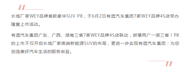 現(xiàn)在,即WEY來丨有道汽車集團P8上市,燃爆三省!