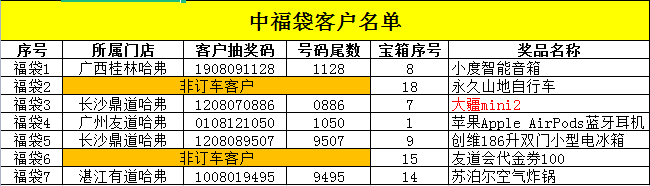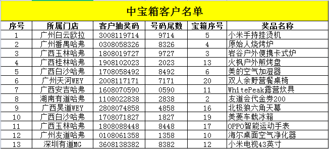 中獎(jiǎng)客戶名單