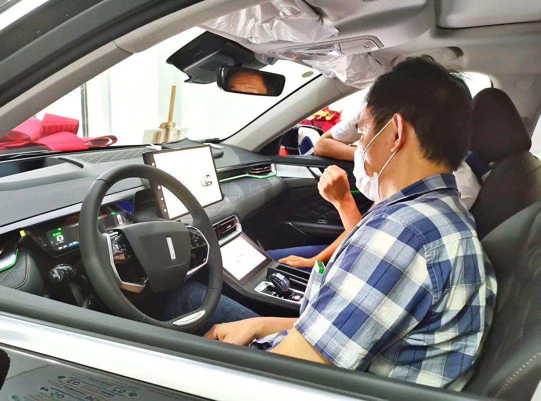 在現(xiàn)場舉行交接儀式時,工作人員將鑰匙送到車主手中,這位眼光獨到的車主在現(xiàn)場親自檢查車輛情況,對自己選擇的愛車贊不絕口,滿心歡喜抑制不住,表示非常期待接下來與拿鐵DHT-PHEV相伴的日子。