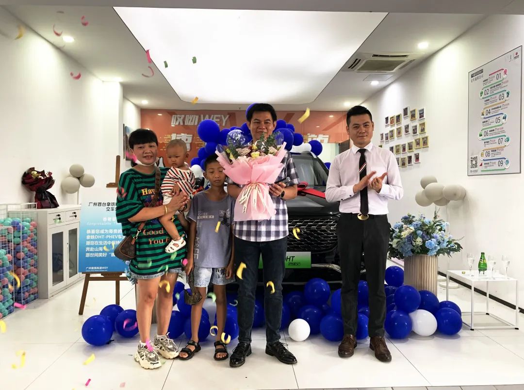 最后,工作人員與車主一家人合影留念,有道祝福車主暢享出行生活,WEY來可期!